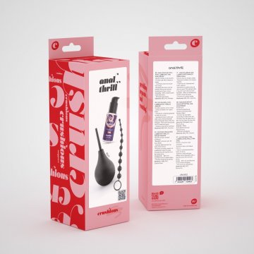 Tem 3 produtos essenciais em um, um prático duche, um lubrificante com propriedades relaxantes e uma tira com 10 pérolas para estimulação máxima.