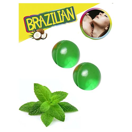 Conjunto de 2 bolinhas recheadas com lubrificante beijável.