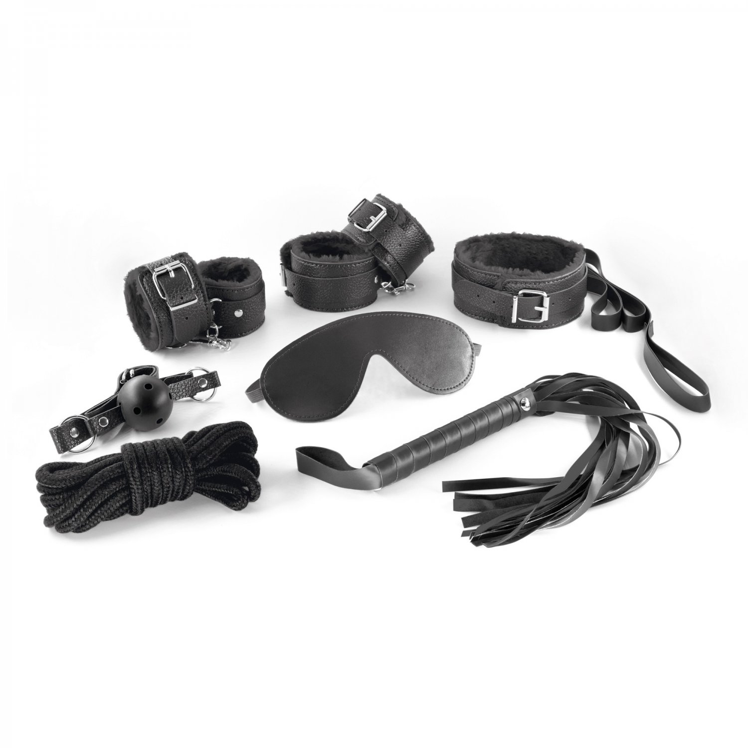 Com um toque de mistério, controlo e submissão, o kit convida-a a viver fantasias com segurança, elegância e intensidade. Todos os itens incluídos são ajustáveis ao seu corpo, permitindo total conforto e liberdade de experimentação. O interior em pelúcia proporciona uma sensação suave e envolvente, contrastando com a resistência do couro sintético, que garante firmeza e desafio durante as brincadeiras.